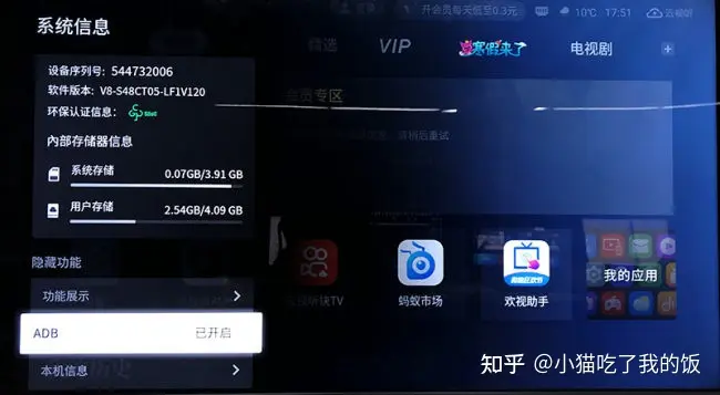第二步:打开电视的adb调试开关