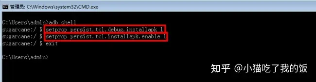 (6)然后分别输入以下两条命令,就可以成功打开第三方应用安装权限。